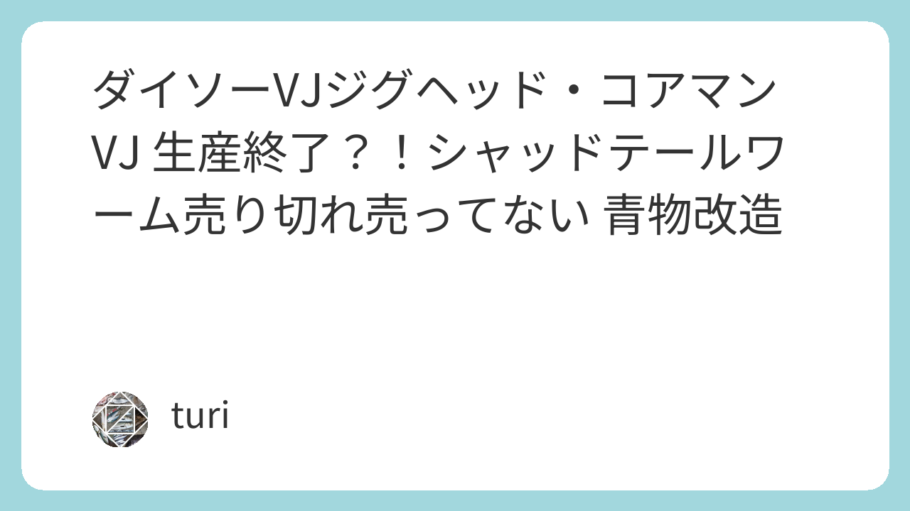 ダイソーVJジグヘッド・コアマンVJ 生産終了?!シャッドテールワーム売り切れ売ってない 青物改造