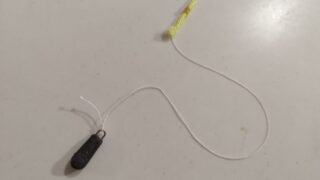 • 仕掛けの幹糸にオモリを通し、下にハリス+針をつけるシンプルな形