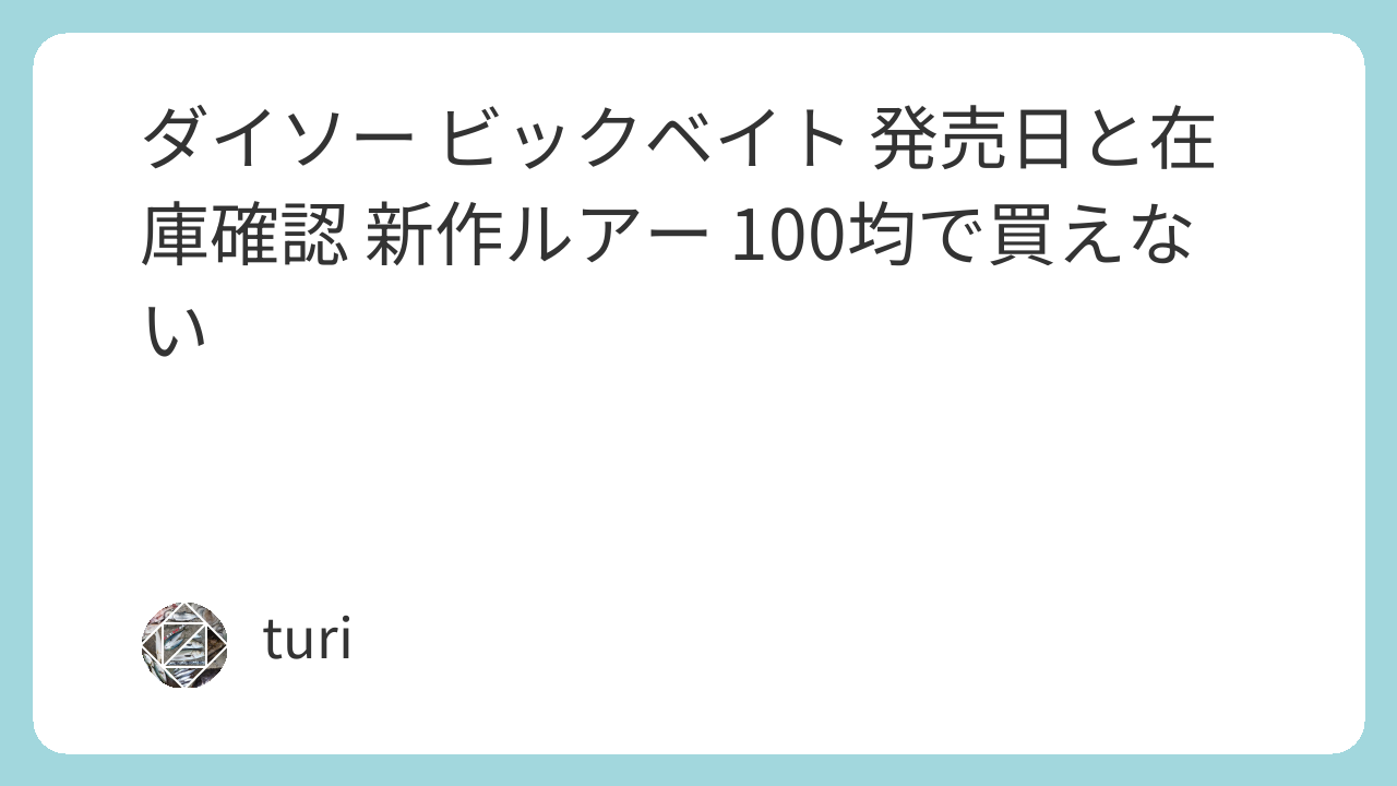 新作ルアーが登場しました。発売日は公式では確認できませんでしたが、9/27から情報が出回っているので100均のダイソーのビックベイトの発売日は9/27頃になります。