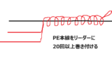5.巻きつけたPEラインの部分を水などで濡らして摩擦熱を軽減させます。