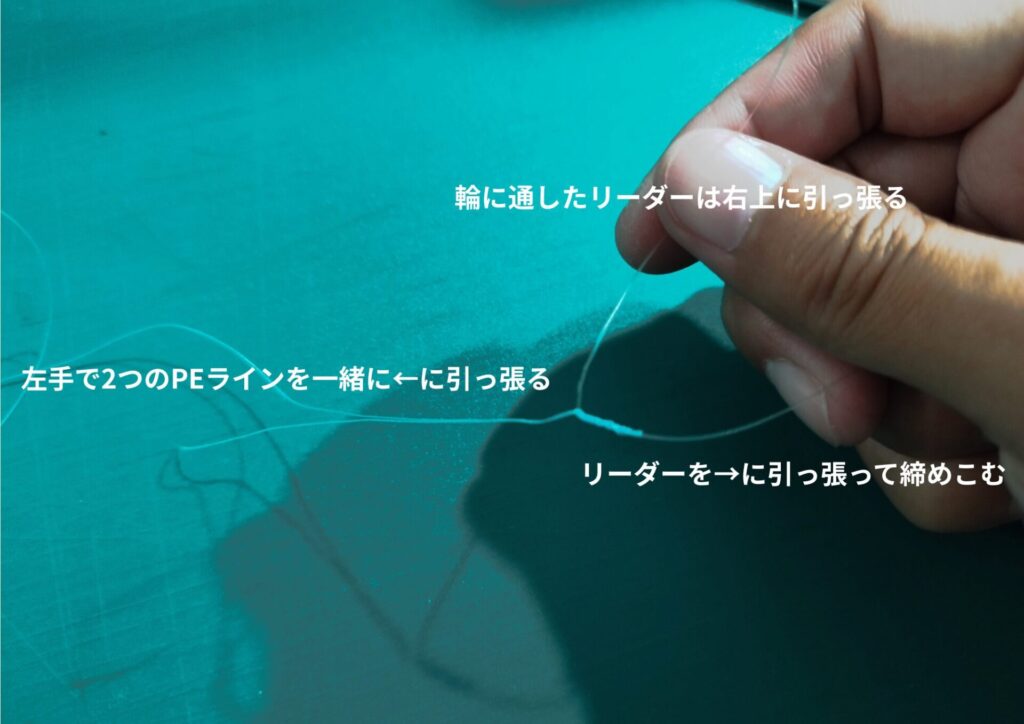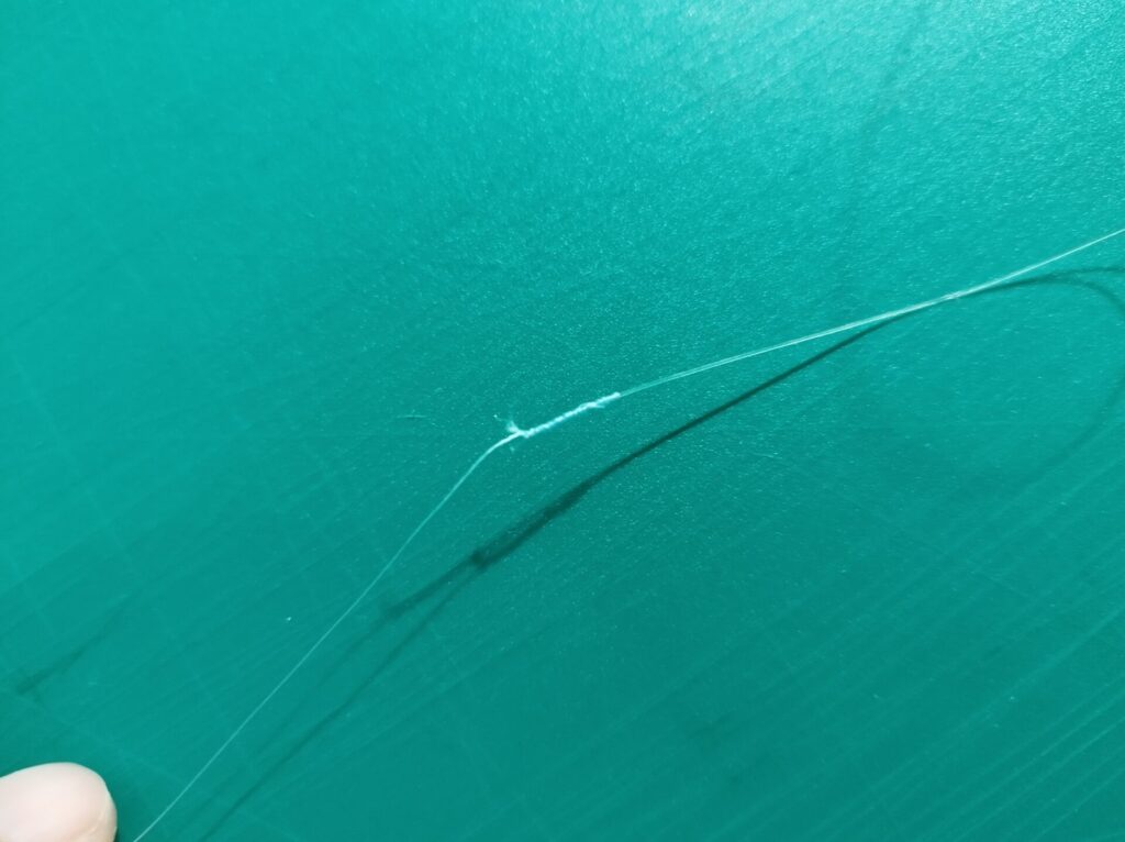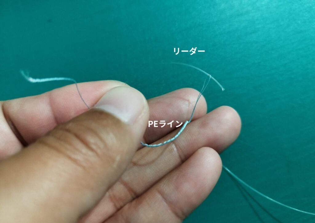 7.余ったPEラインとリーダーを1mm程度残してカットします。