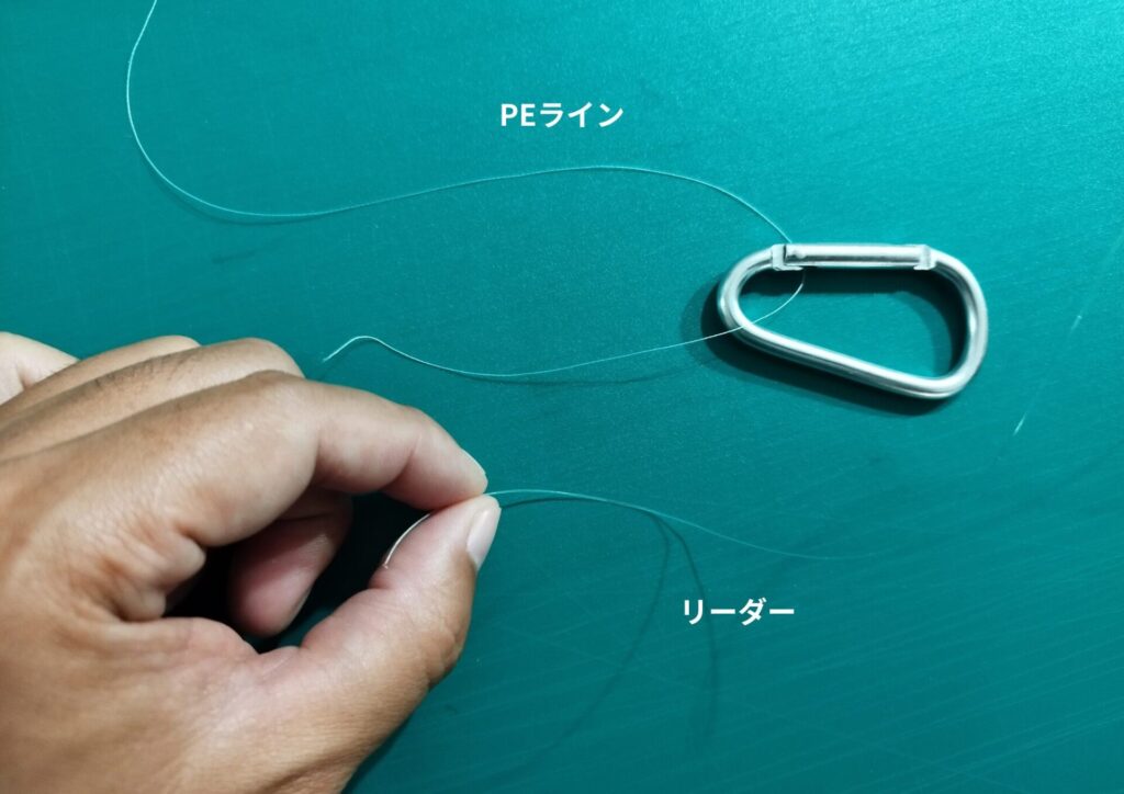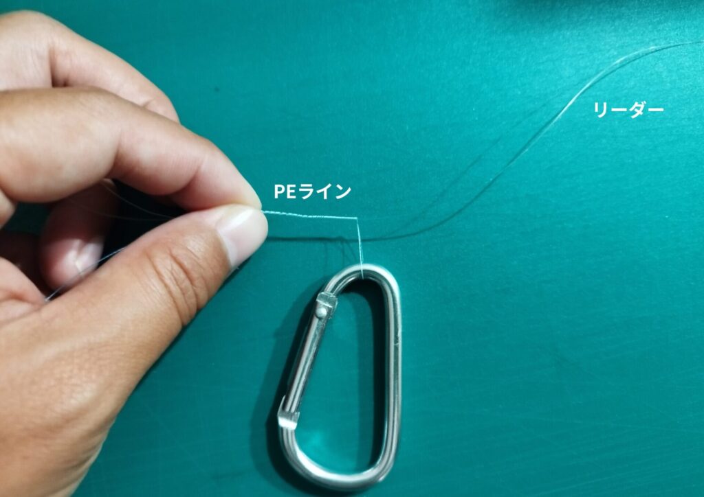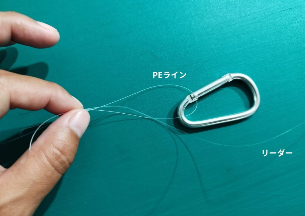 1.PEラインにカラビナを通して折り返します。