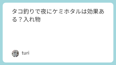 タコ釣りで夜にケミホタルは効果ある?夜のタコ釣りに「ケミホタル(発光スティック)」を使うのは効果がありそうに感じますが、何度か使った時は効果を感じませんでした。逆にケミホタルを外した時に釣れたこともあ...